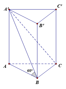 Biết góc giữa hai mặt phẳng \(\left( {A'BC} \right)\) và \(\left( {ABC} \right)\) bằng \({60^0}\), tính thể tích của khối lăng trụ đã cho.