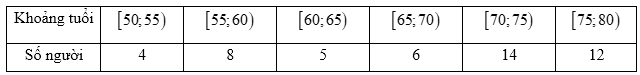Thống kê số lượng thành viên tương ứng với từng nhóm tuổi đang sinh hoạt trong một câu lạc bộ dưỡng sinh theo bảng số liệu dưới đây