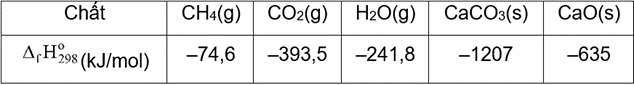 Ở điều kiện chuẩn, cần phải đốt cháy hoàn toàn bao nhiêu gam methane CH4(g) (làm tròn đến hàng phần trăm) để cung cấp nhiệt cho phản ứng tạo 1 mol CaO bằng cách nung CaCO3. Giả thiết hiệu suất các quá trình đều là 100%. Phương trình nhiệt của phản ứng nung vôi và đốt cháy methane như sau: