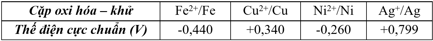 Cho bảng giá trị thế điện cực chuẩn của các cặp oxi hóa – khử như sau:Ở điều kiện
