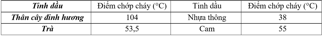 Tinh dầu được phép vận chuyển có điểm chớp cháy > 60°C.