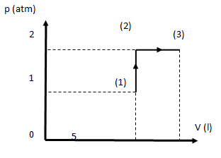 Một khối khí thể tích 10l, nhiệt độ 27oC, áp suất 1atm biến đổi qua hai quá trình liên tiếp: quá trình 1, đẳng tích áp suất tăng gấp đôi; quá trình 2, đẳng áp thể tích sau cùng là 15l.