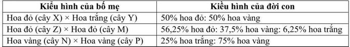 Ở một loài thực vật, để xác định quy luật di truyền của tính trạng màu hoa người ta đã tiến hành 3 phép lai, thu được kết quả như sau: