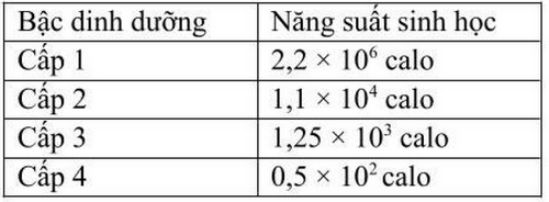 Cho các thông tin ở bảng dưới đây: Hiệu suất sinh thái giữa bậc dinh