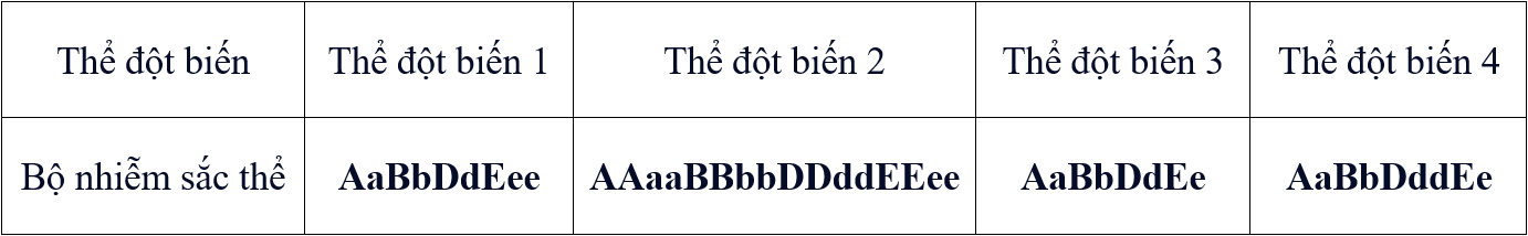 Một loài thực vật lưỡng bội có 4 cặp NST được kí hiệu lần lượt là Aa, Bb, Dd, Ee. Giả sử có 4 thể đột biến với số lượng NST như sau:
