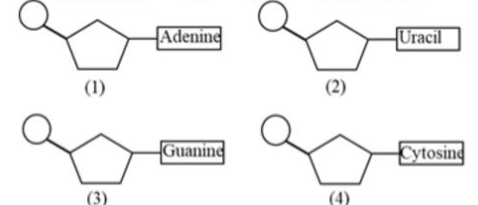 Hình bên dưới mô tả 4 loại nucleotide cấu tạo nucleic acid. Cặp nucleotide nào sau đây có thể liên kết với nhau bằng liên kết hydrogene trong phân tử DNA mạch kép: