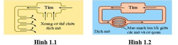 | b) Hệ tuần hoàn ở hình 1.1 là hệ tuần hoàn kín, ở hình 1.2 là hệ tuần hoàn hở. | ||