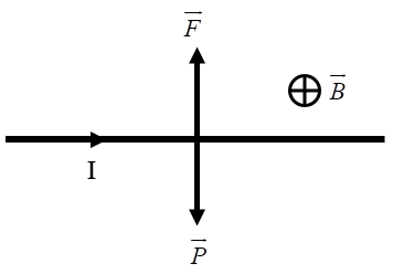 Một dây dẫn thẳng, cứng, dài 20 cm, có khối lượng 50 g được giữ nằm yên theo phương ngang trong một từ trường có độ lớn cảm ứng từ là 0,49 T và có hướng nằm ngang, vuông góc với dây. Cường độ dòng điện chạy trong dây là bao nhiêu ampe để khi dây được thả ra thì nó vẫn nằm yên? Lấy \(g = 9,8m/{s^2}\).