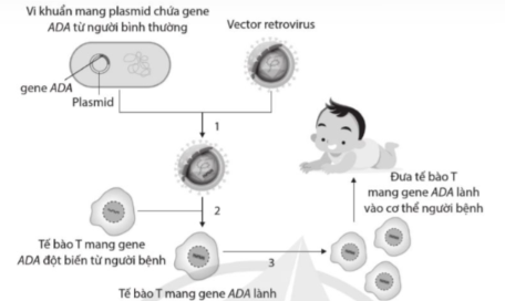 Hình vẽ sau đây mô tả sơ đồ quá trình điều trị rối loạn suy giảm miễn dịch (SCID) nhờ