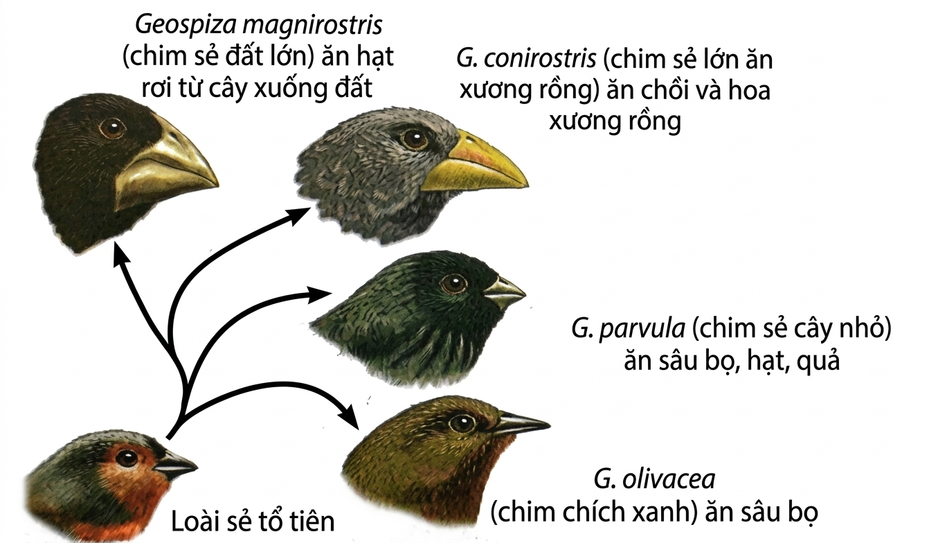 Hình sau đây mô tả mối liên hệ giữa hình dạng mỏ của các