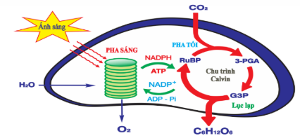 Sơ đồ thể hiện mối quan hệ giữa hai pha quá trình quang hợp ở thực vật C3 như sau: