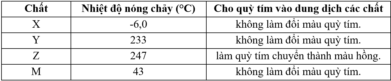 | d) Các chất X, Y, Z, M là chất rắn ở điều kiện thường. |