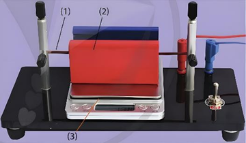 Cảm ứng từ của từ trường giữa hai cực của nam châm trong thí nghiệm trên có độ lớn bằng bao nhiêu tesla (làm tròn kết quả đến chữ số hàng phần trăm)?