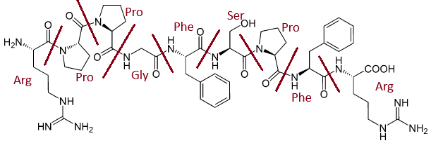 Thủy phân cắt mạch bradykinin để xác định các amino acid tạo thành.