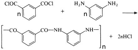 Nomex (poly(m-phenylene isophthalamide)) là một loại polymer đặc biệt, được biết đến với khả năng chịu nhiệt và chống cháy tuyệt vời. Nomex chủ yếu được sử dụng trong sản xuất quần áo bảo hộ cho công nhân trong các ngành công nghiệp có rủi ro cháy nổ cao, như ngành dầu khí, hóa chất, và cứu hỏa. Đặc tính chịu nhiệt của Nomex cho phép nó chịu được nhiệt độ rất cao mà không bị biến dạng hoặc cháy. Trong công nghiệp, Nomex được sản xuất từ phản ứng trùng ngưng m-phenylenediamine và isophthaloyl chloride theo phương trình sau: