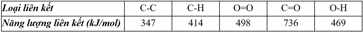 Một bình gas (khí hóa lỏng) chứa hỗn hợp propane (C3H8) và butane (C4H10) với tỉ lệ mol 1 : 2. Năng lượng liên kết trong bảng sau: