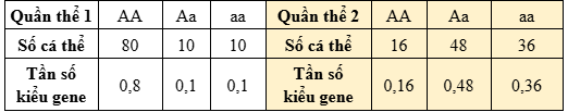 | b) Trước di cư, tần số allele A quần thể 1 là 0,4, tần số allele a quần thể 2 là 0,15. | ||