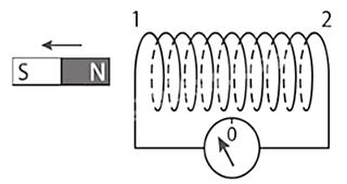 Hình bên mô tả thí nghiệm về hiện tượng cảm ứng điện từ. Khi dịch chuyển thanh nam châm ra xa ống dây, trong ống dây có dòng điện cảm ứng. Nếu nhìn từ phía thanh nam châm vào đầu ống dây, phát biểu nào sau đây đúng?