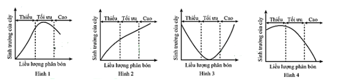 Đồ thị hình số mấy dưới đây biểu diễn chính xác mối tương quan giữa liều lượng phân bón và mức độ sinh trưởng của cây?
