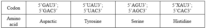 Cho biết các codon mã hóa một số loại amino acid như sau: