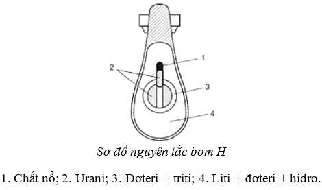 Bom hydrogen (bom H) là một loại vũ khí hạt nhân có sức tàn phá lớn hơn bom nguyên tử (bom A) rất nhiều lần, dù hiện nay cả bom hydrogen và bom nguyên tử đều không được sử dụng trong các cuộc chiến tranh. Sở dĩ bom hydrogen có sức tàn phá lớn như vậy là do nó là sự kết hợp của phản ứng phân hạch của \({}_{92}^{235}U\) (giai đoạn 1) để tạo ra môi trường có nhiệt độ rất cao, cung cấp động năng cho các hạt tham gia phản ứng nhiệt hạch (giai đoạn 2) theo phương trình phản ứng: \({}_1^2H + {}_1^3H \to {}_2^4He + {}_0^1n + 17,6MeV\). Giả sử năng lượng toả ra từ quá trình phân hạch còn lại sau khi tạo phản ứng nhiệt hạch là \(2,{8.10^{10}}J\) và khối lượng \({}_2^4He\) được tạo thành từ một vụ nổ bom hydrogen trong thí nghiệm vũ khí hạt nhân là 200 g. Cho số Avogadro là \({N_A} = 6,{022.10^{23}}mo{l^{ - 1}}\). Biết \(1{\rm{ }}eV = 1,{6.10^{ - 19}}J\)