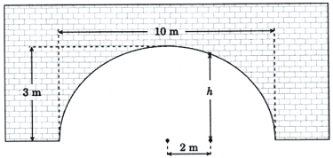 Mái vòm của một đường hầm có hình bán elip. Chiều rộng của đường hầm là 10m, điểm cao nhất của mái vòm là 3m . Gọi h là chiều cao của mái vòm tại điểm cách tâm của đường hầm 2m. Tính h?