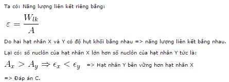 Giả sử hai hạt nhân X và Y có độ hụt khối bằng nhau và số nuclôn của hạt nhân X lớn hơn số nuclôn của hạt nhân Y thì