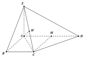 Cho hình chóp $S.ABCD$ có đáy là hình thang vuông $ABCD$ ($AD$//$BC,AB\bot AD$) và $SA\bot\left( {ABCD} \right)$, $AD = 2BC = 2AB = 2a$.