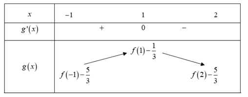 Lập bảng biến thiên của hàm số $g(x)$ trên đoạn $\left\lbrack {- 1;2} \right\rbrack$ rồi kết luận giá trị lớn nhất của $g(x)$ trên đoạn $\left\lbrack {- 1;2} \right\rbrack$
