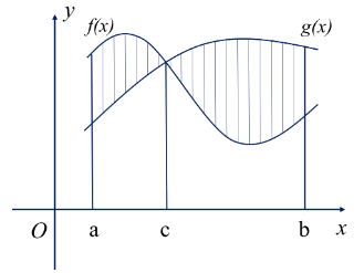 Kí hiệu S là diện tích hình phẳng giới hạn bởi các đồ thị hàm số $y = f(x)$, $y = g(x)$ và hai đường thẳng $x = a,x = b$ như hình vẽ dưới. Khẳng định nào dưới đây đúng?