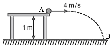 Một quả bóng nhỏ có khối lượng 100 g được ném với vận tốc ban đầu 4 m/s theo phương ngang ra khỏi mặt bàn ở độ cao 1 m so với mặt sàn (hình vẽ). Chọn mốc thế năng tại B. Lấy \(g = 10\,\,m/{s^2}\), bỏ qua mọi ma sát.