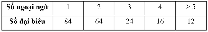 b) Hãy tính tỉ lệ phần trăm đại biểu sử dụng được ít nhất 2 ngoại ngữ.