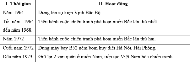 | b) Mỹ tiến hành các cuộc chiến tranh phá hoại miền Bắc nhằm buộc Việt Nam ký hiệp định theo hướng có lợi cho Mỹ. | ||