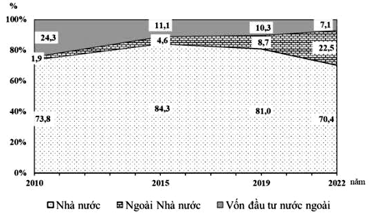 Dựa vào tỉ trọng sản lượng điện của Nhà nước, ngoài Nhà nước và khu vực có vốn đầu tư ngước ngoài giai đoạn 2010 – 2022. Lựa chọn nhận xét đúng.
