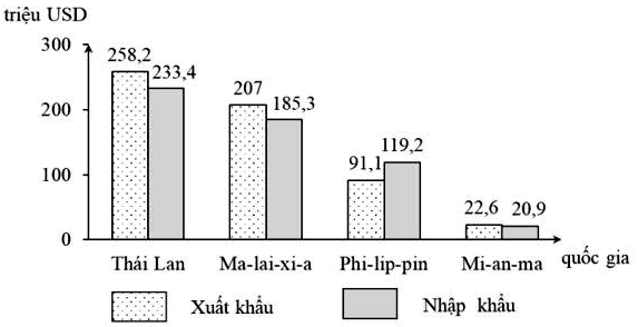 | c) Thái Lan, Ma-lai-xi-a và Phi-lip-pin đều là những nước xuất siêu. | ||