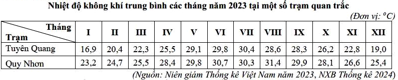 Biên độ nhiệt = Nhiệt độ tháng cao nhất – Nhiệt độ tháng thấp nhất.