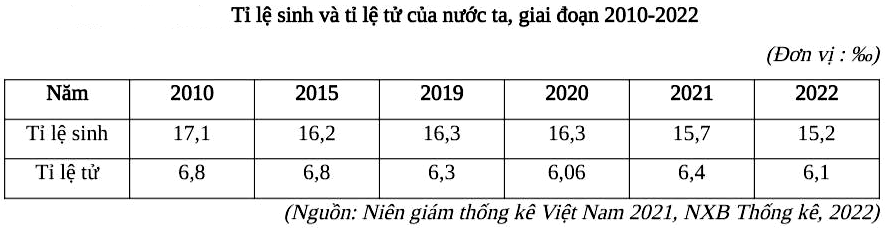 Cho bảng số liệu: Cho biết tỉ lệ gia tăng dân số tự nhiên của nước ta năm 2022 giảm đi bao