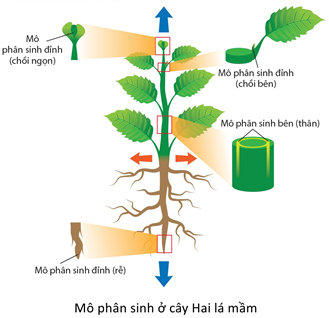 (1) đỉnh rễ; (2) Thân; (3) chồi nách;