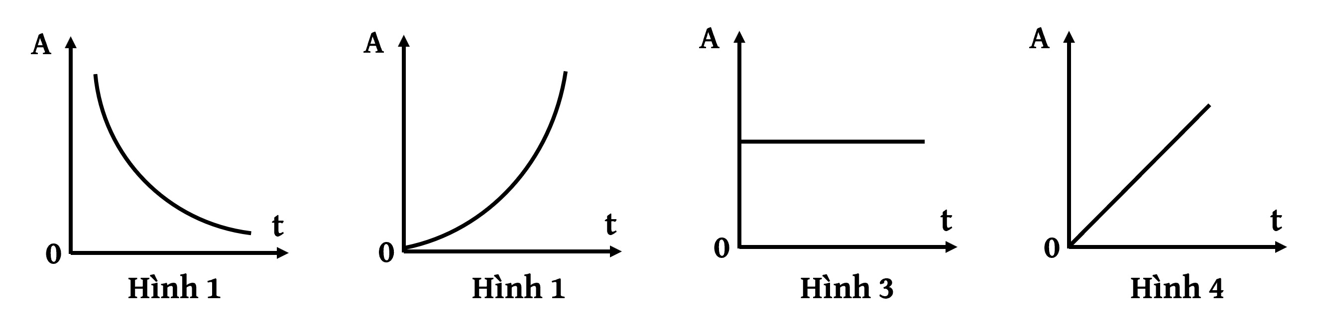 Một động cơ có công suất không đổi, công của động cơ thực hiện theo thời gian là đồ thị nào sau đây?
