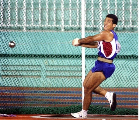 Trong môn ném tạ xích, một vận động viên quay dây sao cho cả dây