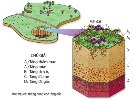 | a) Theo chiều thẳng đứng, lớp đất gồm 5 tầng khác nhau. | ||