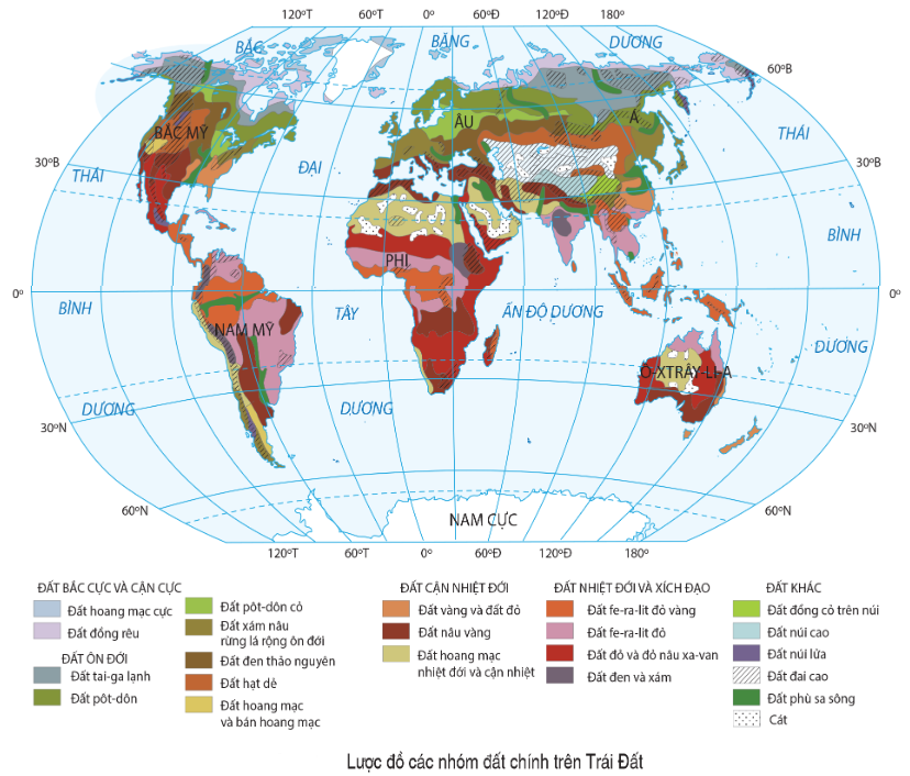 Dựa vào lược đồ và nội dung về một số nhóm đất chính trên Trái Đất.