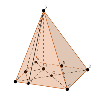 Cho hình chóp $S.ABCD$ có đáy là hình vuông tâm $O$ cạnh $a$. Hình chiếu vuông góc của $S$xuống
