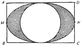 Một vật trang trí có dạng một khối tròn xoay được tạo thành khi quay miền $(R)$ (phần gạch chéo trong hình vẽ) quanh trục MN. Biết rằng ABCD là hình chữ nhật với $AB = 6\text{cm},$ $AD = 10\text{cm}\text{.}$ Gọi M, N lần lượt là trung điềm của A B, C. Hai đường cong là đường Elip có hình chữ nhật cơ sở là ABCD và đường tròn tiếp xúc với hai cạnh AD và BC (tham khảo hình vẽ). Tính thể tích của vật trang trí đó (kết quả làm tròn đến hàng phần chục theo đơn vị $\text{cm}^{3}$ ).
