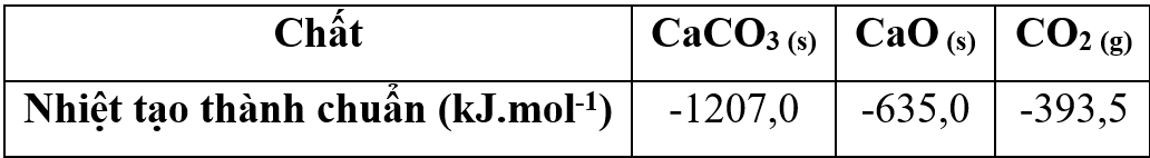 Cho biết: $\Delta$rSo298 = 159,26 J.mol-1.K-1 và nhiệt tạo thành chuẩn của một số chất như sau:
