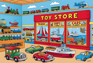 Một cửa hàng bán đồ chơi trong một ngày bán được nhiều loại phương tiện giao thông đồ chơi.