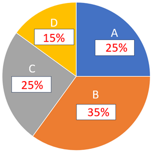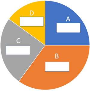 Hãy viết các tỉ số phần trăm của mỗi loại so với tổng số phương tiện đồ chơi vào các phần tương ứng A, B, C, D của biểu đồ hình quạt.
