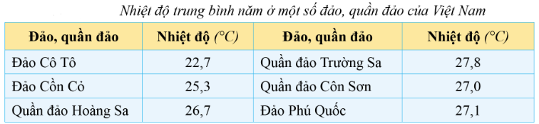 | b) Nhiệt độ trung bình năm của vùng biển đảo nước ta có xu hướng tăng dần từ bắc vào nam. | ||