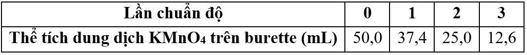 Bước 3: Đem chuẩn độ ba phần bằng dung dịch KMnO4 0,1 M. Kết quả thu được dưới bảng sau: