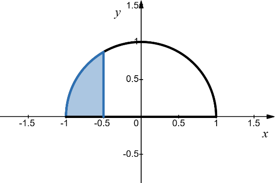 Một viên bi có dạng hình cầu, đường kính $2\,\text{cm}$ được cắt thành hai phần bởi một mặt phẳng như hình vẽ. Biết rằng diện tích phần mặt cắt trên viên bi là $S = \dfrac{3\pi}{4}$$\left( \text{cm}^{\text{2}} \right)$. Thể tích của phần nhỏ hơn của viên bi là: